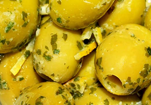 Meaty & delicious marinated olives in lemon, garlic & coriander, ideal with your favourite glass of wine or ouzo.