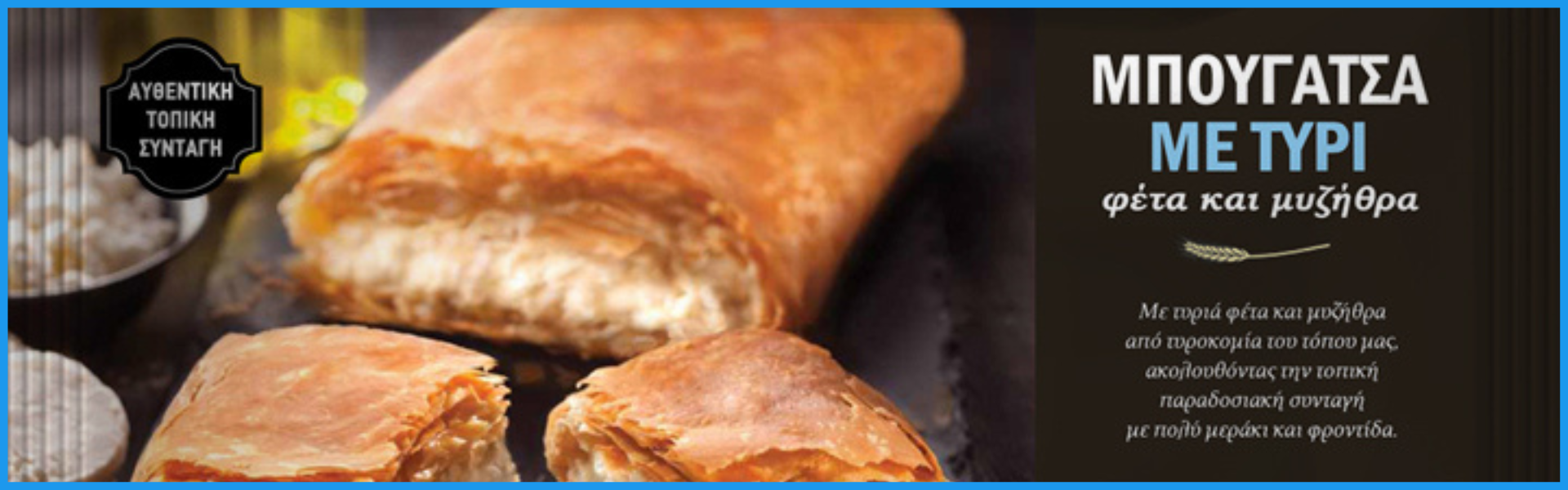The cheese bougatsa is a beloved breakfast treat made of phyllo pastry filled with a mixture of cheeses, usually Myzithra and feta cheese.